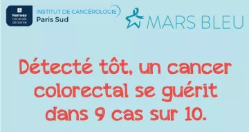 Les équipes de l'Institut de Cancérologie Paris Sud se mobilisent une nouvelle fois dans le cadre de la campagne nationale "Mars Bleu" dans le but de sensibiliser et convaincre le public de l’importance du dépistage du cancer colorectal. Détecté tôt, il se guérit dans 9 cas sur 10.